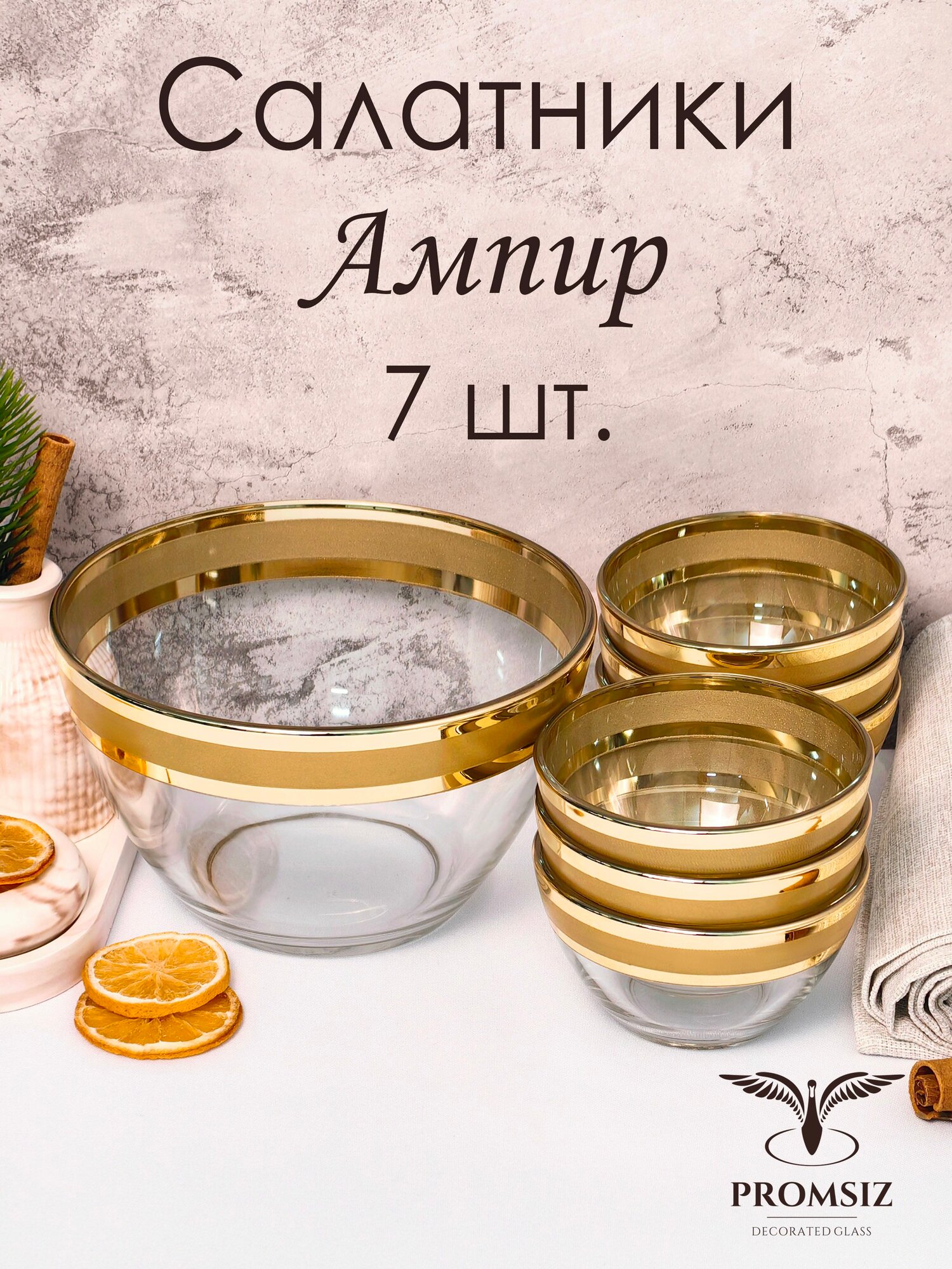 Набор стеклянных салатников с алмазной гравировкой PROMSIZ Ампир 1500 мл 1 шт.+ 250 мл 6 шт./ Посуда для сервировки и подачи / 7 шт.: сравнение цен, характеристики, фото, актуальное наличие и цены.