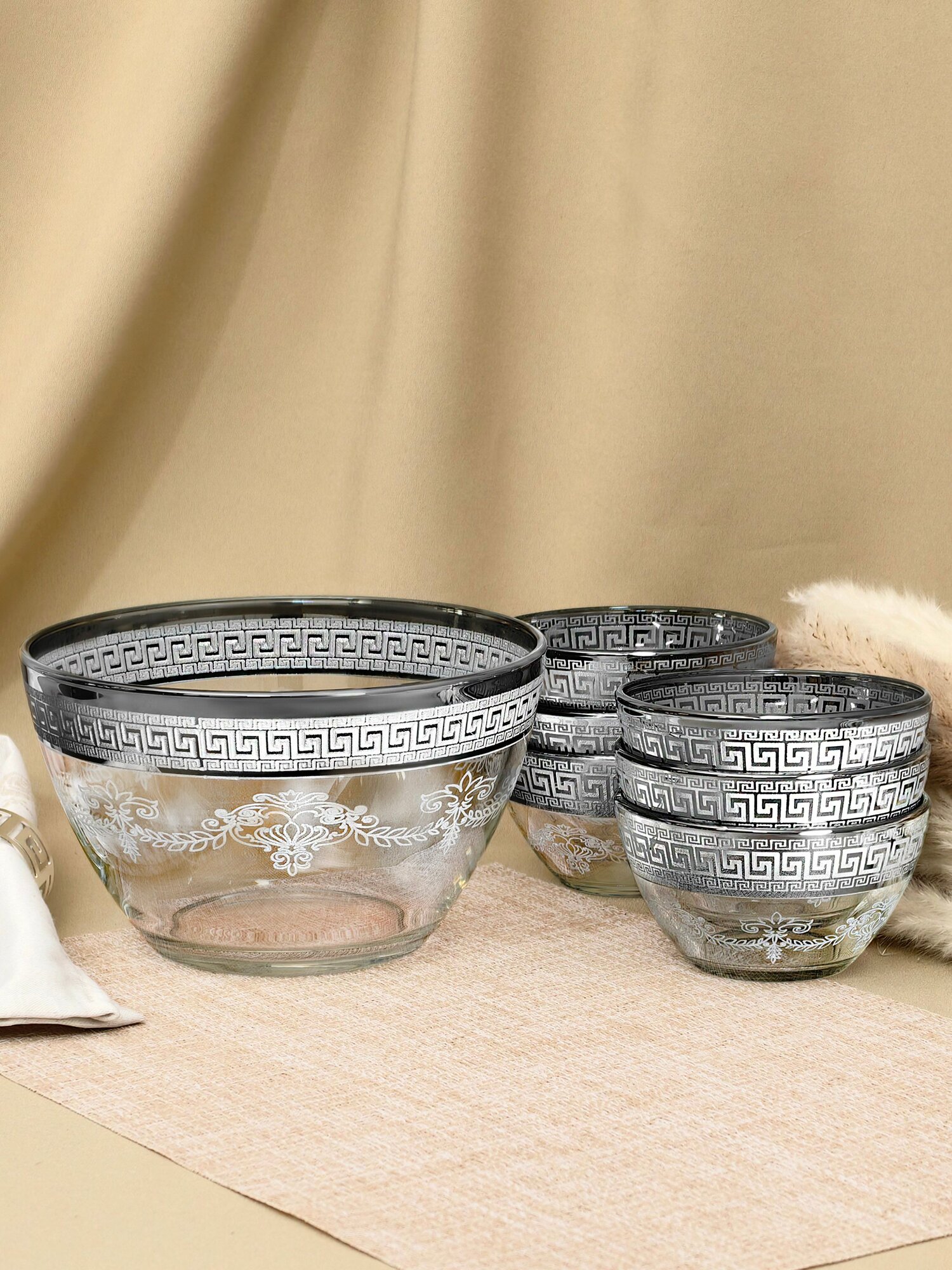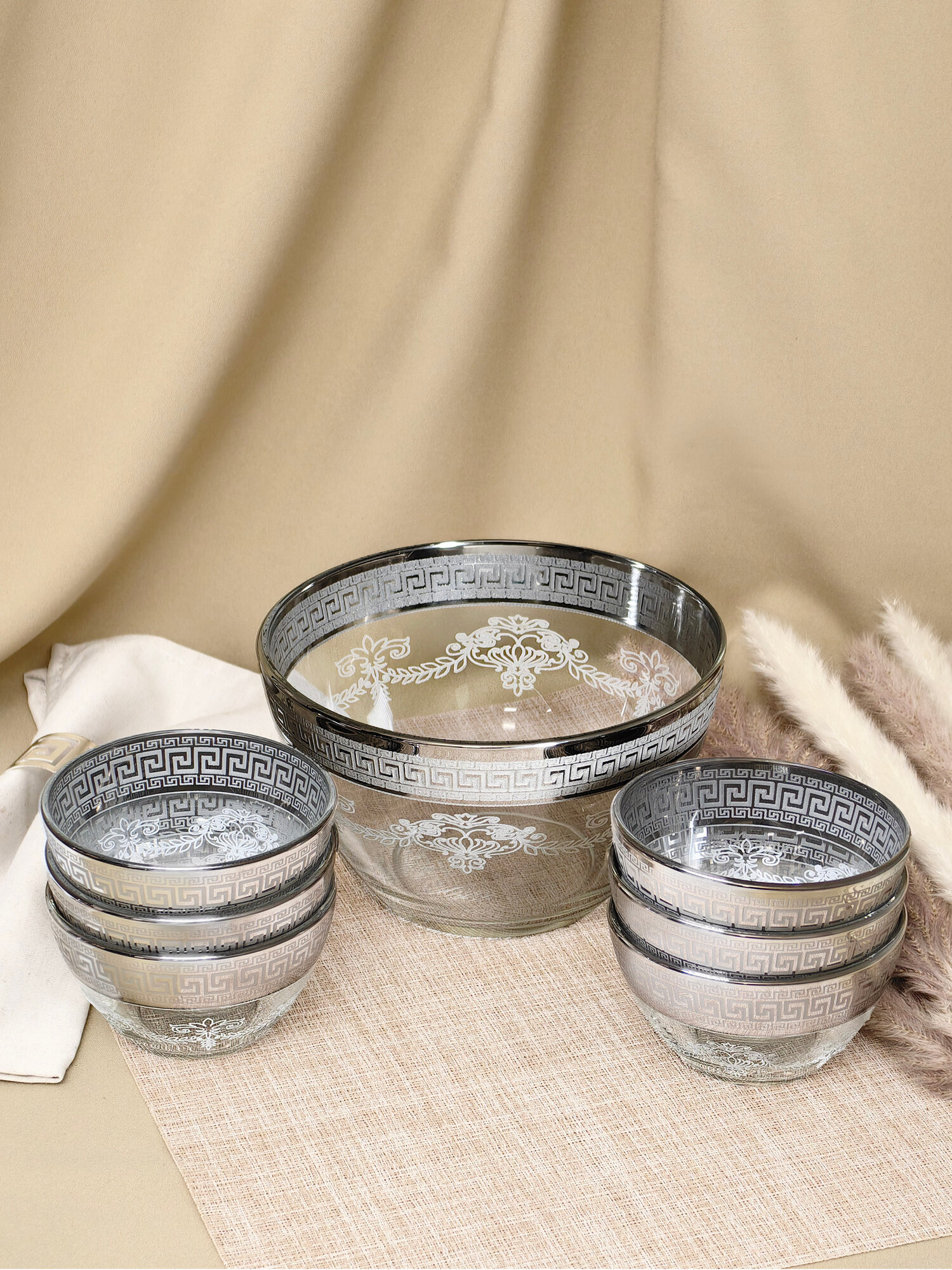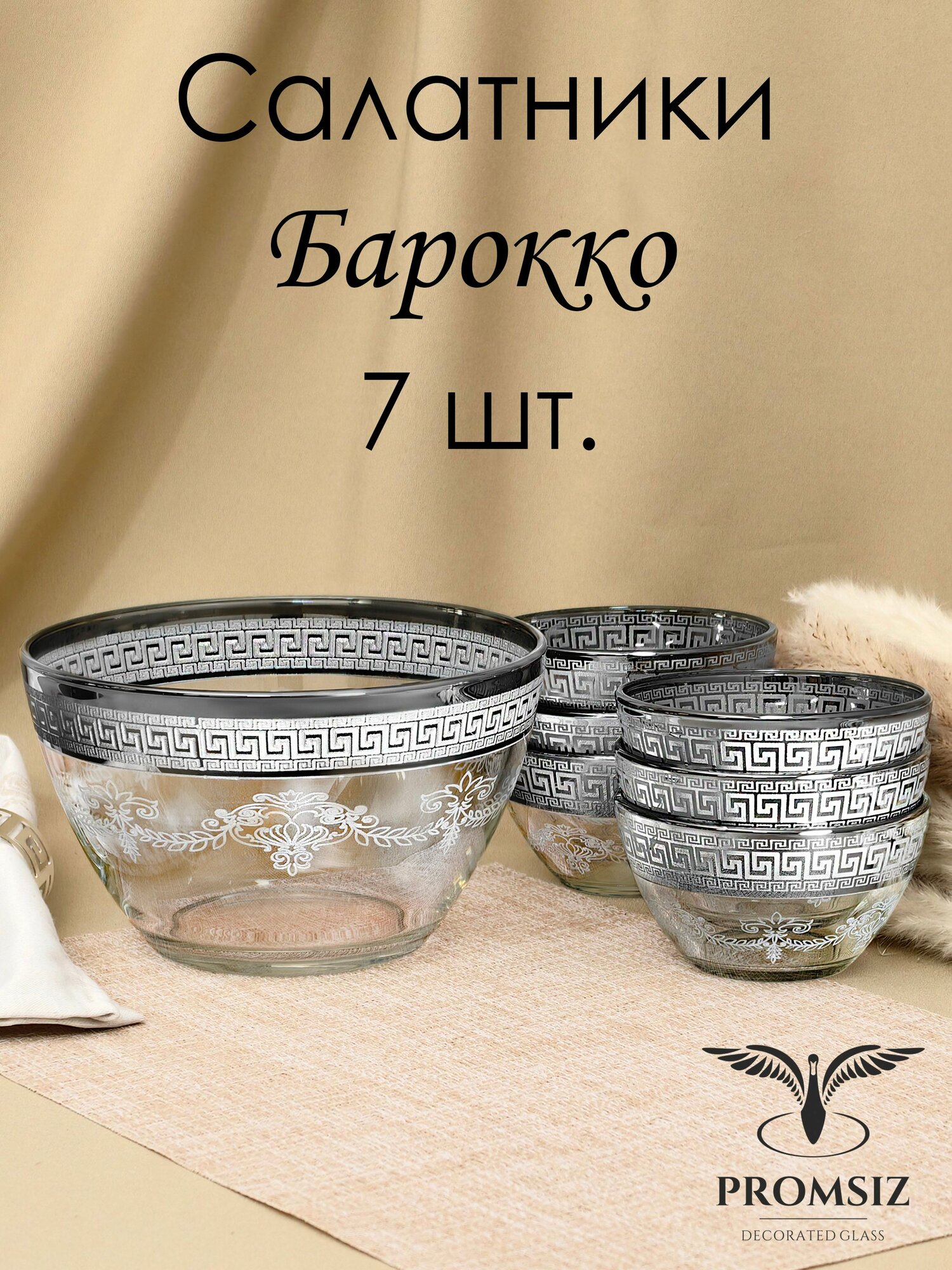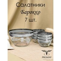 Купить Набор стеклянных салатников с алмазной гравировкой PROMSIZ барокко / 1500 мл 1 шт.+ 250 мл 6 шт./ Посуда для сервировки и подачи / 7 шт. с доставкой по всей России.
