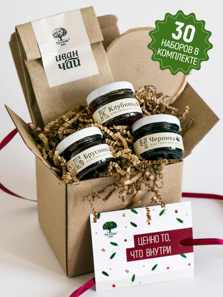 Подарочный набор сладостей от «Русского Леса» — это отличный способ порадовать близкого человека на любой праздник, будь то День Рождения, Новый год, 8 марта или 23 февраля. Он станет замечательным сюрпризом для мужчины или женщины, друга или коллеги. Стильно оформленный бокс, наполненный разнообразными вкусняшками и угощениями, вызывает улыбку и создает атмосферу радости. Сладкий подарок бренда "Русский лес" отлично подходит как вариант корпоративных подарков сотрудникам и для личных торжеств. Замечательный знак внимания и благодарности для преподавателя и воспитателя на первое сентября, на день учителя или на выпускной, для руководителя и тренера, а также для бабушки и дедушки, мамы и папы, сестер и братьев. Сладкий набор легко подарить в качестве презента на День Рождения (ДР), Юбилей, День учителя, Новый Год 2026 (НГ) или Рождество, благодаря качеству и разнообразию его содержимого! Внутри подарочной упаковки вас ждет не только вкусный и ароматный чай, которым можно наслаждаться в компании гостей и друзей, но и сладкие подарки, такие как варенье из сосновой шишки, джем или орехи в сиропе. Каждый продукт в этом боксе тщательно подобран, чтобы подарить наслаждение и радость. Ягодные джемы и ореховые десерты делают этот продуктовый box особенным, необычным и привлекательным. Этот русский сувенир может стать прекрасным угощением на уютном чаепитии с семьей, друзьями или партнерами по бизнесу. Продукция представлена в элегантной крафтовой коробке с атласной лентой и открыткой, которые подчеркивают эстетический подход к упаковке и не только защищают содержимое, но и радуют глаз. С полезными сладостями «Русского Леса» вы всегда сможете выразить свою благодарность и любовь, делая каждый повод для праздника особенным. С этим необычным подарком вы создадите атмосферу уюта и тепла, которая останется в памяти ваших близких надолго!