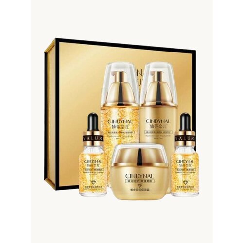 Набор уходовой косметики с 24-картным золотом анти-эйдж обеспечит коже эффективный антивозрастной уход. В состав продукта входят гиалуроновая кислота и микрочастицы золота, которые помогут вернуть коже красоту, свежесть, упругость и эластичность. Регулярное использование набора поможет справиться с проявлением возрастных изменений, предотвратить появление новых морщин и заметно разгладить уже имеющиеся. Набор поможет очаровательной представительнице прекрасного пола вернуть эпидермису былую упругость, эластичность и красоту. Косметические продукты этой серии обладают легкой консистенцией, поэтому после нанесения не оставляет ощущение дискомфортной липкости. Они интенсивно впитываются кожным покровом и щедро насыщают его живительной влагой. При использовании маски, тоника, лосьона, сыворотки, крема 24K Gold уменьшается выраженность мимических морщин, оказывается эффект лифтинга на кожу, мягко осветляются пигментные пятна. Продукты активизируют протекание процессов метаболизма, что способствует ускоренной реновации клеток и синтезу белков соединительной ткани. Они обладают превосходными освежающими, успокаивающими и укрепляющими свойствами, даря коже роскошное сияние изнутри и замедляя процессы старения.