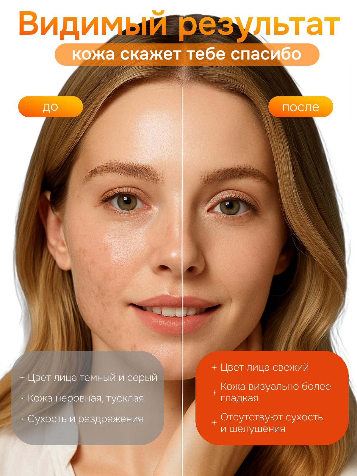 После применения средств в упаковке кожа становится сияющей, эластичной, увлажненной и подтянутой.