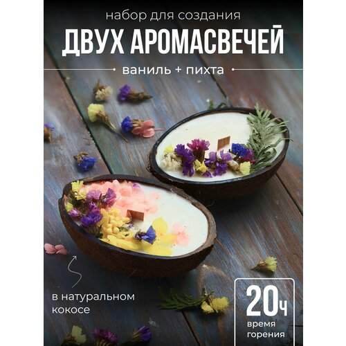 Соберите свечи с помощью нашего набора для изготовления свечей, и у вас появится возможность насладиться двумя ароматическими свечами из соевого воска, залитыми в натуральную скорлупу кокоса.
