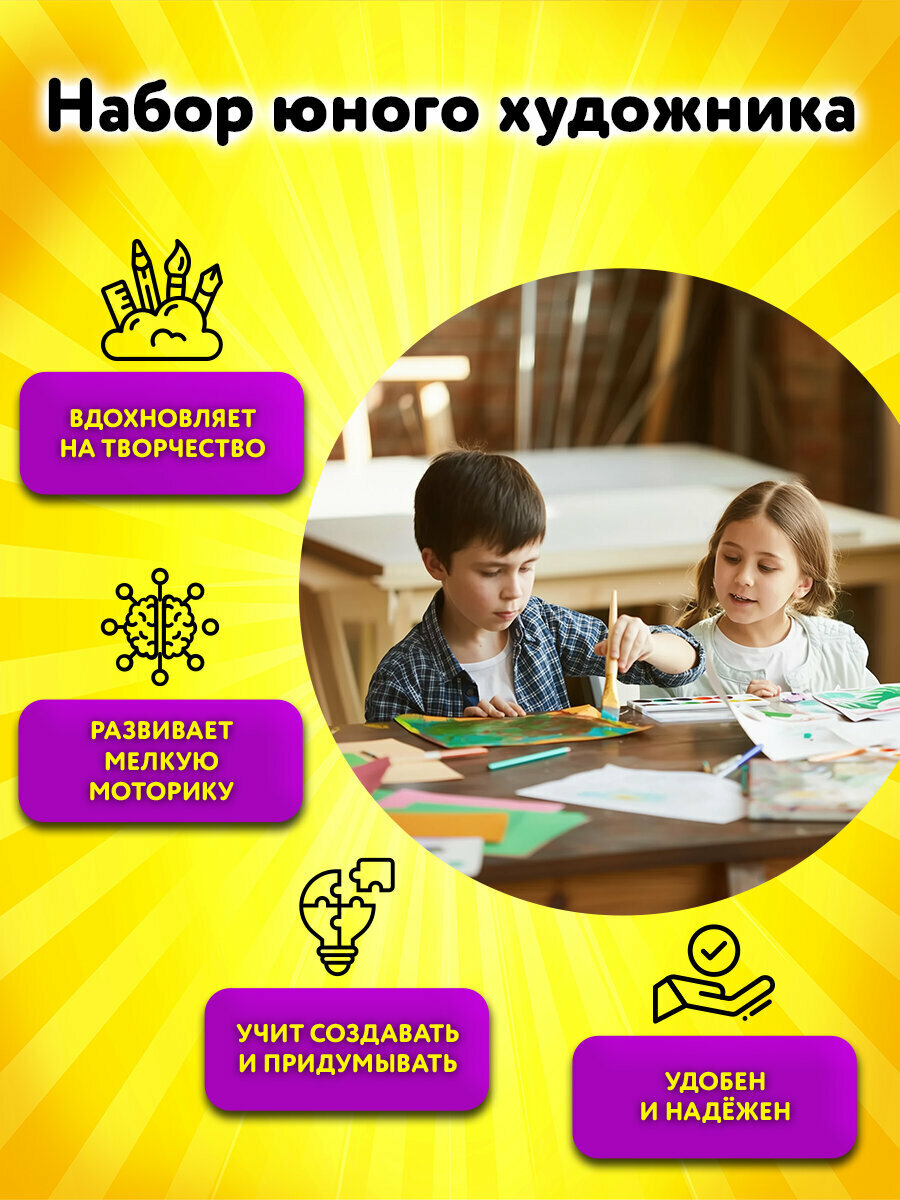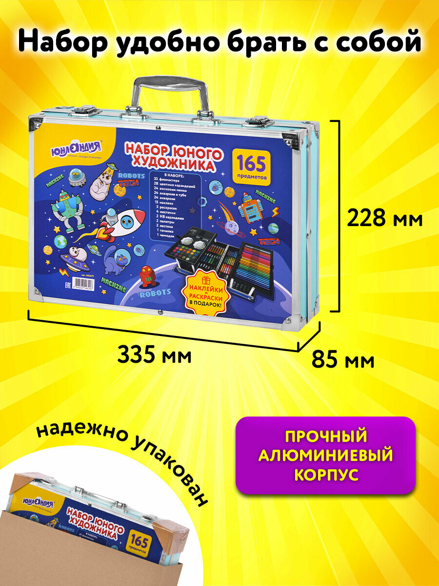 Подарочный набор юного художника для рисования, детского творчества в школу, краски, кисти, карандаши, 165 предметов в кейсе, Юнландия Космос, 665671: сравнение цен, характеристики, фото, актуальное наличие и цены.