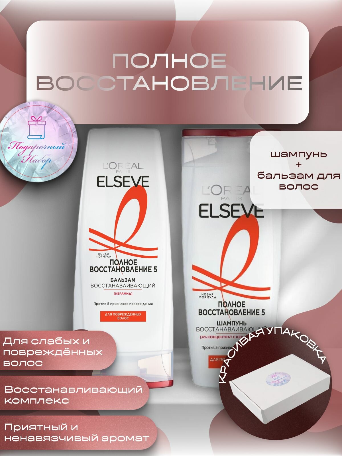 Подарочный набор Женский L’oreal paris Elseve Полное восстановление 5 Бальзам 400 мл + Шампунь 400 мл: сравнение цен, характеристики, фото, актуальное наличие и цены.