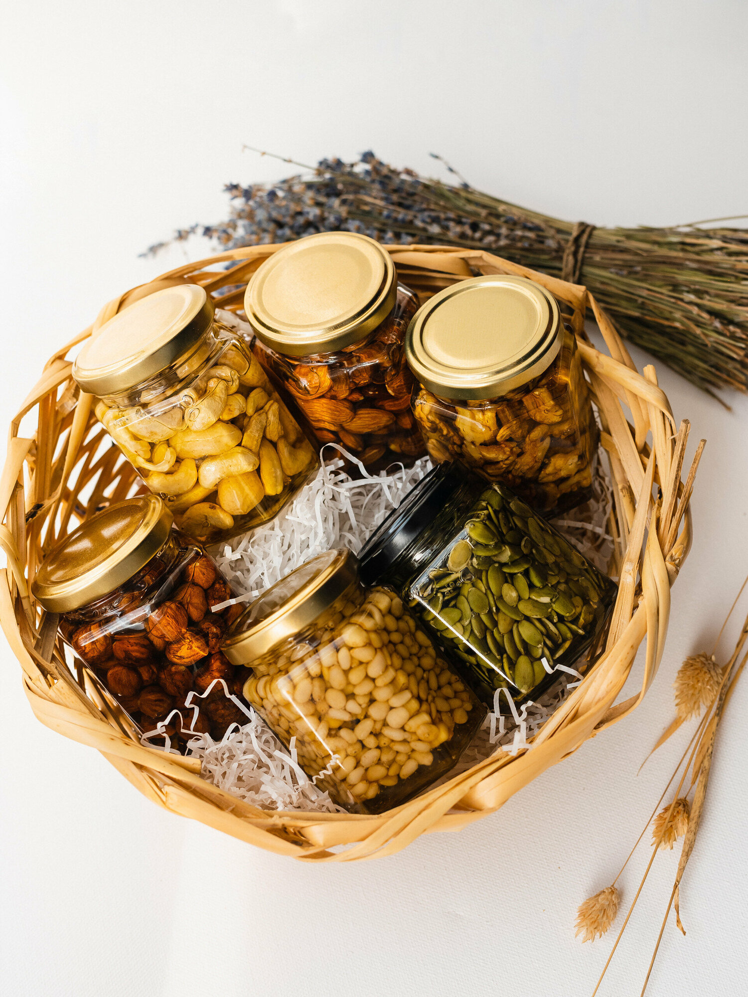 Подарочный набор орехи в меду ( подарочный набор мёд с орехами ) - состоит и 6 оригинальных баночек с лавандовым медом и орехами : кешью в меду , грецкие орехи в меду , орехи кедровые в меду , тыквенные семечки в меду , фундук в меду и миндаль в меду . Натуральный мед с орехами богат витаминами и макроэлементами. Вес каждой банки с мёдом и орехами 270 грамм +-20 грамм . Вкус - сладкий, но не приторный. Запах - приятный, цветочный. Мед кристаллизуется медленно и долго остается в жидким. Этот продукт пчеловодства отлично восстанавливает аппетит и полезен людям подверженным высоким физическим нагрузкам, спортсменам . Помогает он и при бронхолегочных заболеваниях, лечит простудные болезни , болезни ЖКТ и болезни сердечно-сосудистой системы . 100% натуральный мёд и с орехами, собирается в экологически чистом районе . Мед натуральный – это живой продукт, которым можно заменить арахисовую пасту, шоколад, варенье, конфитюр, джем, урбеч.