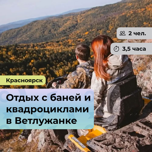 Общая продолжительность мероприятия – 3.5 часа: прогулка на квадроцикле – 1,5 часа, отдых в бане – 2 часа