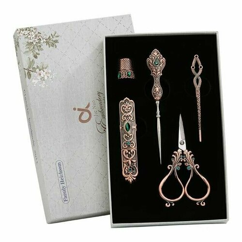 Купить Подарочный Швейный Набор Ножниц 5в1 с Аксессуарами в Античном Ретро Стиле для Рукоделия, Кройки и шитья. Красивый Подарок для Творчества. Медный цвет с доставкой по всей России.
