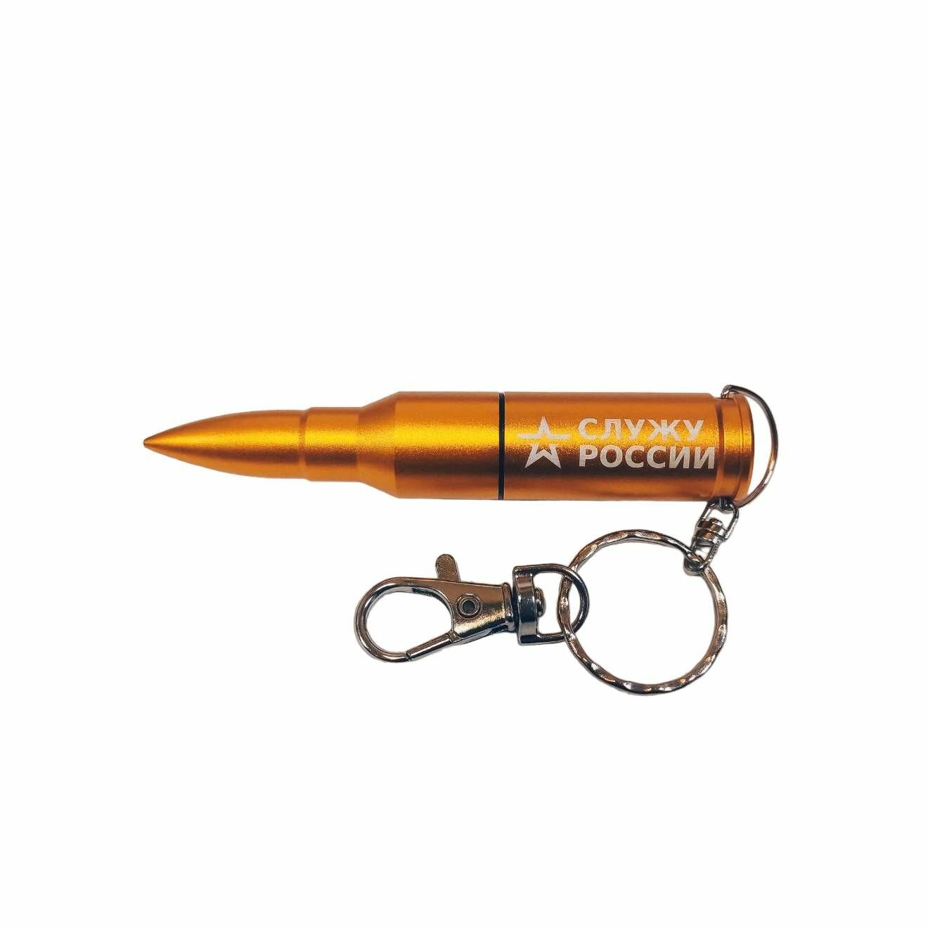 Купить Подарочный USB-флеш-накопитель Патрон пуля золото с гравировкой Служу России сувенирная флешка 128GB USB 3.0 с доставкой по всей России.