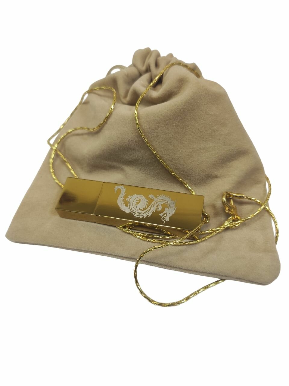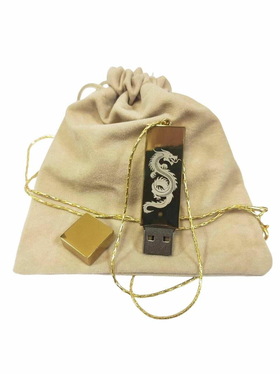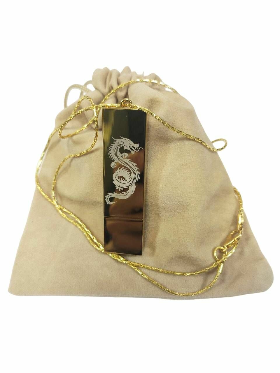 Купить Подарочный USB-флеш-накопитель подвеска на цепочке с гравировкой дракон золото 256GB USB 3.0, с бархатным мешочком с доставкой по всей России.