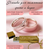 Купить Подарочный USB-накопитель подвеска на цепочке с гравировкой наша свадьба золото 128GB USB 3.0, с бархатным мешочком с доставкой по всей России.