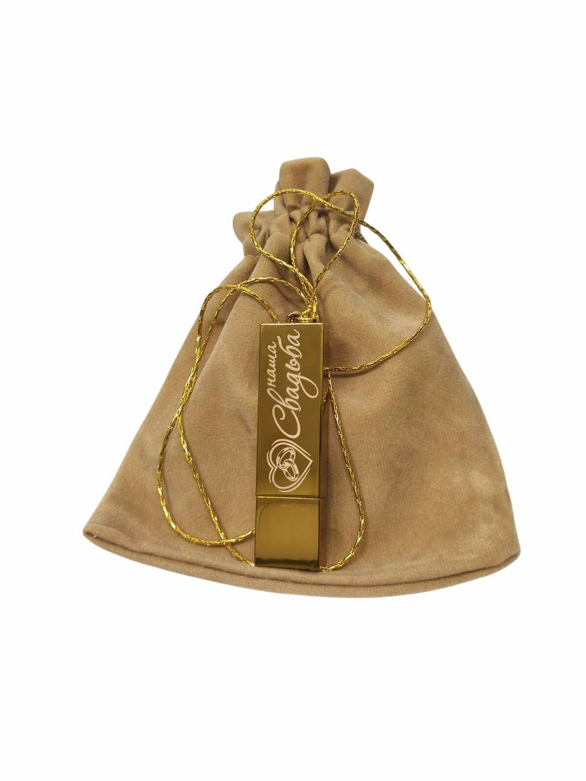 Купить Подарочный USB-накопитель подвеска на цепочке с гравировкой С днем рождения! золото 128GB USB 3.0, с бархатным мешочком с доставкой по всей России.