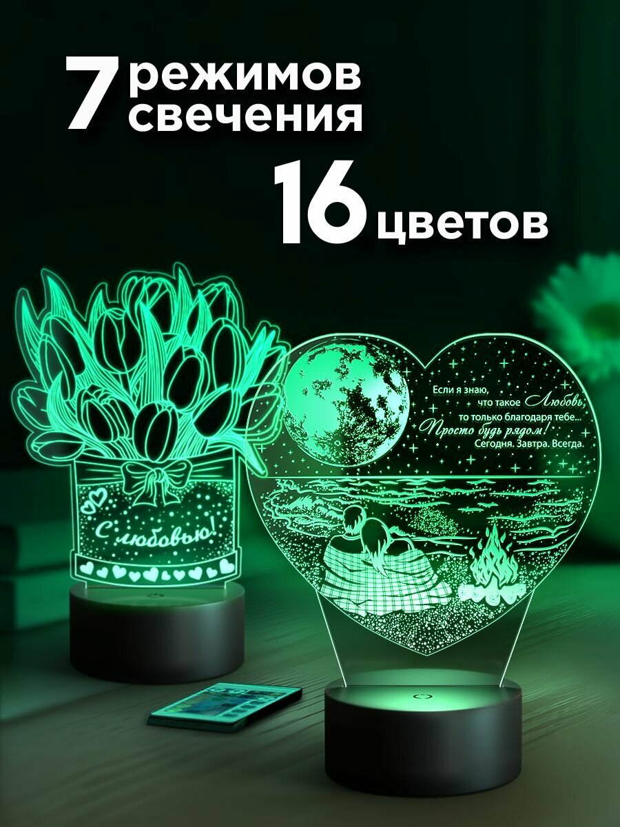 Подарок для любимой Ночник LUXLLUMINA «Пара у костра» , беспроводной, с пультом, 16 цветов: сравнение цен, характеристики, фото, актуальное наличие и цены.