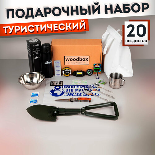 Оригинальный мужской подарочный набор это необычный подарок для вашего мужчины. Многофункциональный комплект включает в себя весь необходимый инвентарь туриста полезный для каждого парня! Термос, кружка, миска, вилка, 2 ложки, прочный нож, складная лопата, термосумка, карабин, изолента, салфетки, пакет для путешествий, 2 лейкоплатыря, таблетки для обеззараживания воды, налобный фонарь, батарейки, карта выживания, компас. Это набор полезных вещей которые обязательно пригодятся всем любителям активного отдыха, рыбалки и охоты. Такой готовый тактический походный набор для выживания поставляется в подарочной крафт коробке. Каждый мужчина оценит по достоинству такой кемпинговый набор и распаковка подарка уже подарит приятные эмоции. Это тактическое снаряжение готовый мультитул для путешествий, похода, рыбалки на природе или туризма, отлично подойдет как подарок мужчине на день рождения, др. Комплект включает в себя все необходимые туристические аксессуары и походный набор. Это будет отличный подарок мужу, парню или девушке, папе на юбилей или новый год, который точно оставит приятные эмоции. Все инструменты и снаряжение в наборе изготовлены из качественных материалов, надежные и долговечные товары для мужчин в оригинальной упаковке.