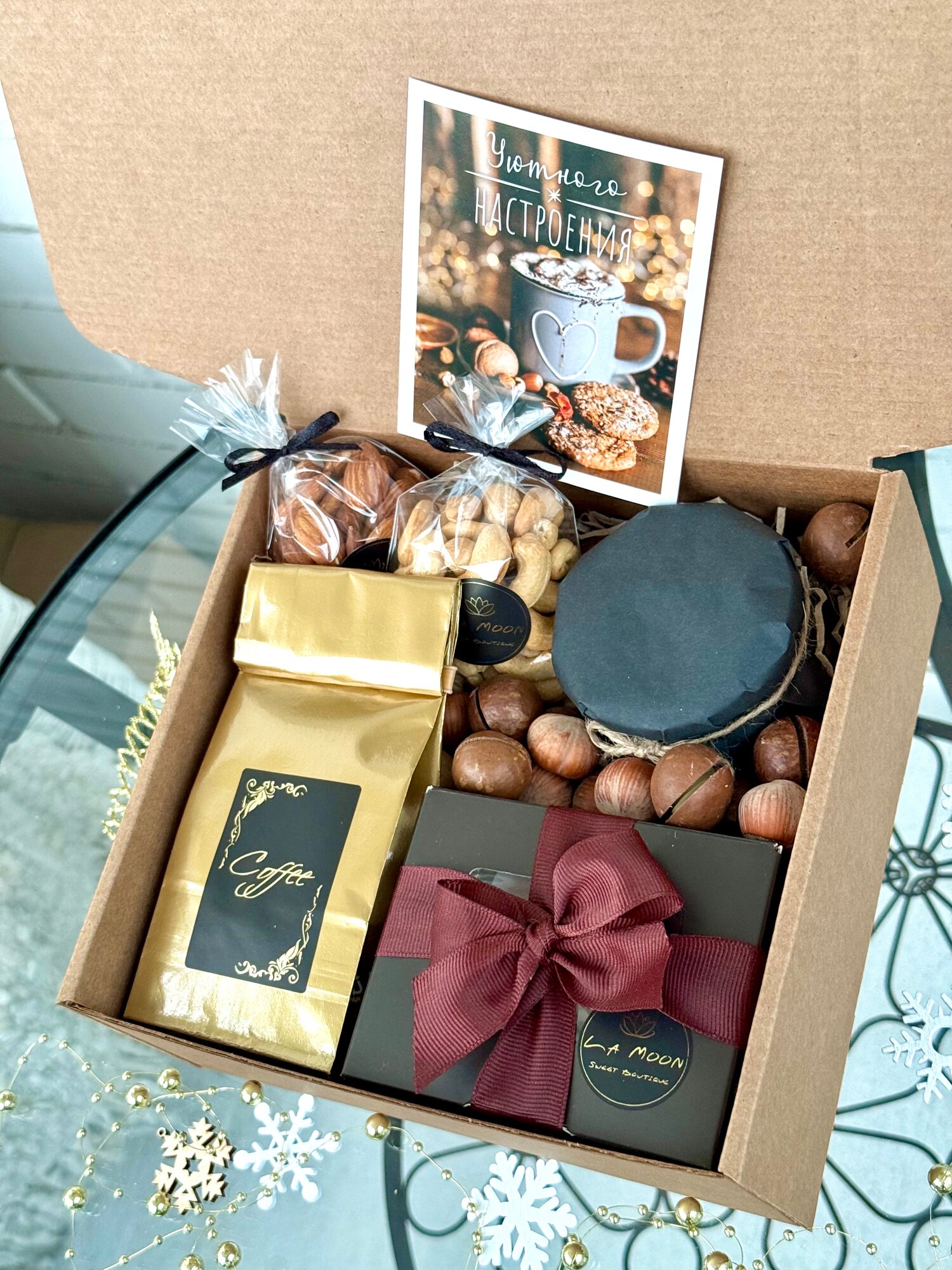Купить Подарок Мужчине на 23 февраля от La Moon с Бельгийскими конфетами ручной работы, медом-суфле, ароматным кофе и жареными орешками с доставкой по всей России. Подарок Мужчине на 23 февраля от La Moon с Бельгийскими конфетами ручной работы, медом-суфле, ароматным кофе и жареными орешками: сравнение цен, характеристики, фото, актуальное наличие и цены.