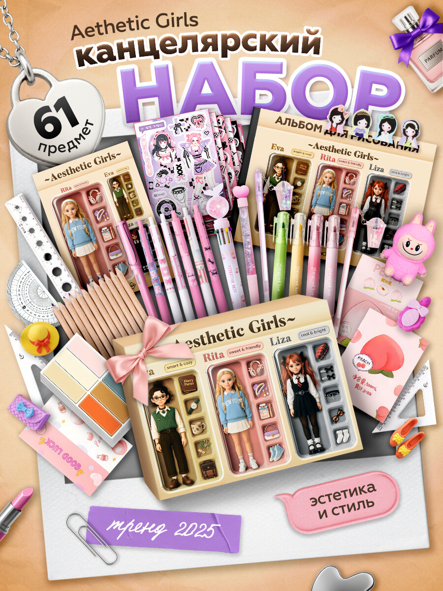 Подарок на Новый год девочке/ набор канцелярии Estetic Girls: сравнение цен, характеристики, фото, актуальное наличие и цены.