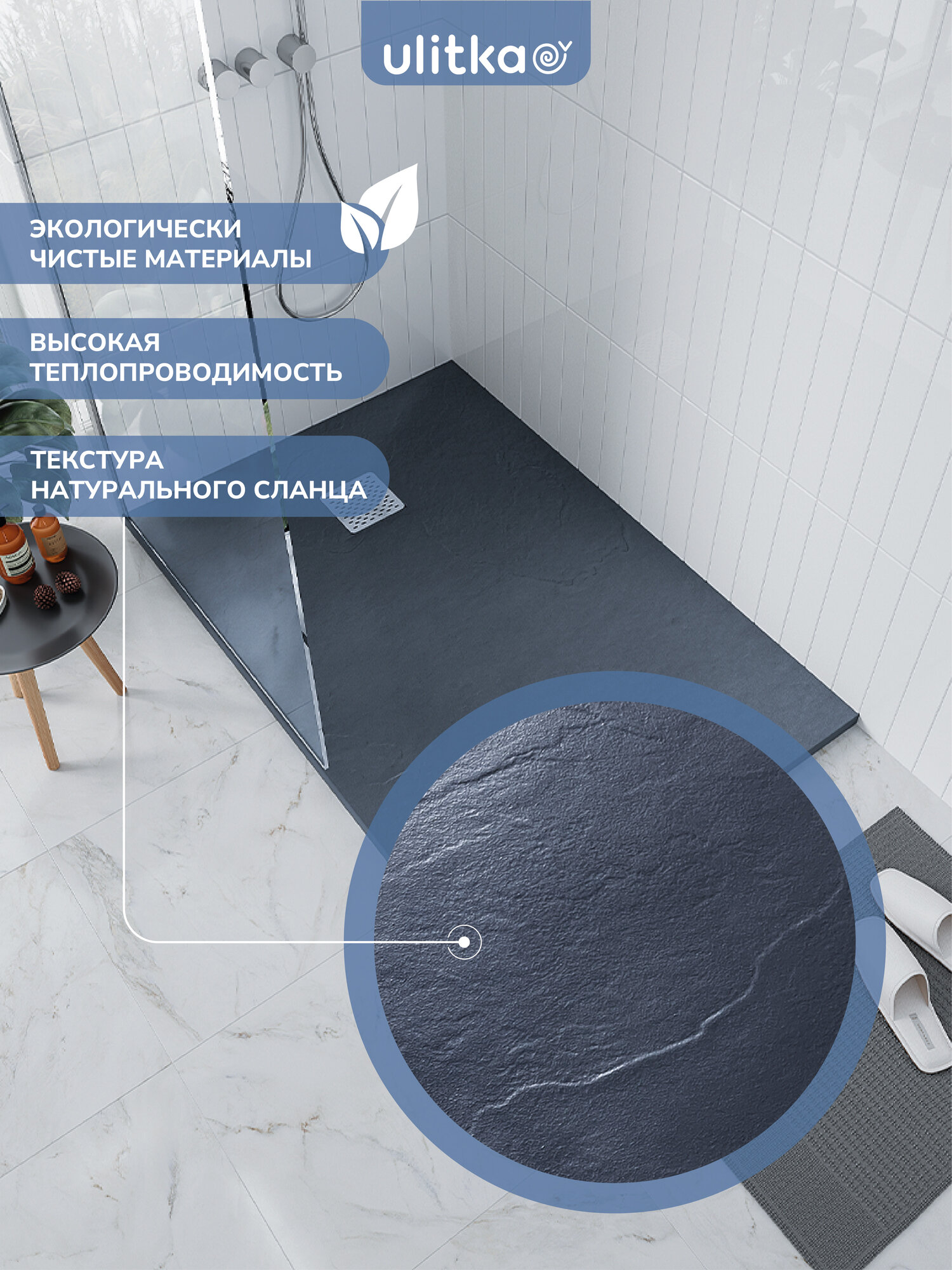 Антискользящее покрытие и низкий поддон