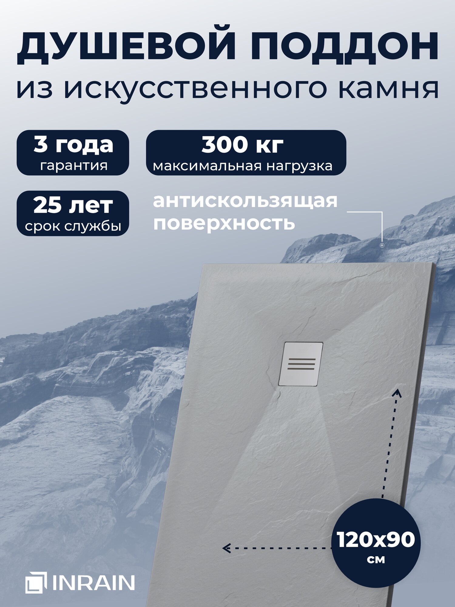 Купить Поддон для душа 120х90 INRAIN из искусственного камня Серый прямоугольный с доставкой по всей России. Поддон для душа 120х90 INRAIN из искусственного камня Серый прямоугольный: сравнение цен, характеристики, фото, актуальное наличие и цены.