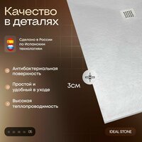 Душевой поддон из искусственного камня белый. Преобразите вашу ванную комнату с помощью нашего стильного и функционального душевого поддона из искусственного камня. Этот низкий поддон, выполненный в элегантном белом цвете, идеально впишется в современный интерьер и станет неотъемлемой частью вашего душевого пространства. Современный дизайн: Прямоугольная форма поддона и его минималистичный стиль делают его идеальным выбором для создания современного душа. Белый оттенок добавляет изысканности и стиля, придавая вашей ванной комнате уникальный характер. Универсальная установка: Поддон подходит для различных типов установки — на каркас, внутрипольный или напольный. Это позволяет легко интегрировать его в любое пространство, независимо от конфигурации вашей ванной комнаты. Безопасность и комфорт: Нескользящее покрытие пола обеспечивает безопасность во время душа, предотвращая случайные падения. Вы можете быть уверены в том, что этот поддон создан с учетом ваших потребностей и комфорта. Комплектность: В комплекте с поддоном идет решетка для слива, что делает установку еще более удобной. Все элементы идеально сочетаются друг с другом, обеспечивая надежную работу системы. Долговечность и легкость в уходе: Изготовленный из испанского, высококачественного искусственного камня, этот поддон не только красив, но и устойчив к повреждениям, пятнам и воздействию влаги. Его гладкая поверхность легко очищается, что позволяет вам поддерживать идеальную чистоту без лишних усилий. Выбирая наш душевой поддон из искусственного камня, вы получаете не только практичное решение для своей ванной комнаты, но и стильный элемент, который подчеркнет ваш индивидуальный вкус. Выполнен по испанской технологии. Создайте идеальное пространство для отдыха и релаксации с нашим поддоном — вашим надежным партнером в создании современного душа!