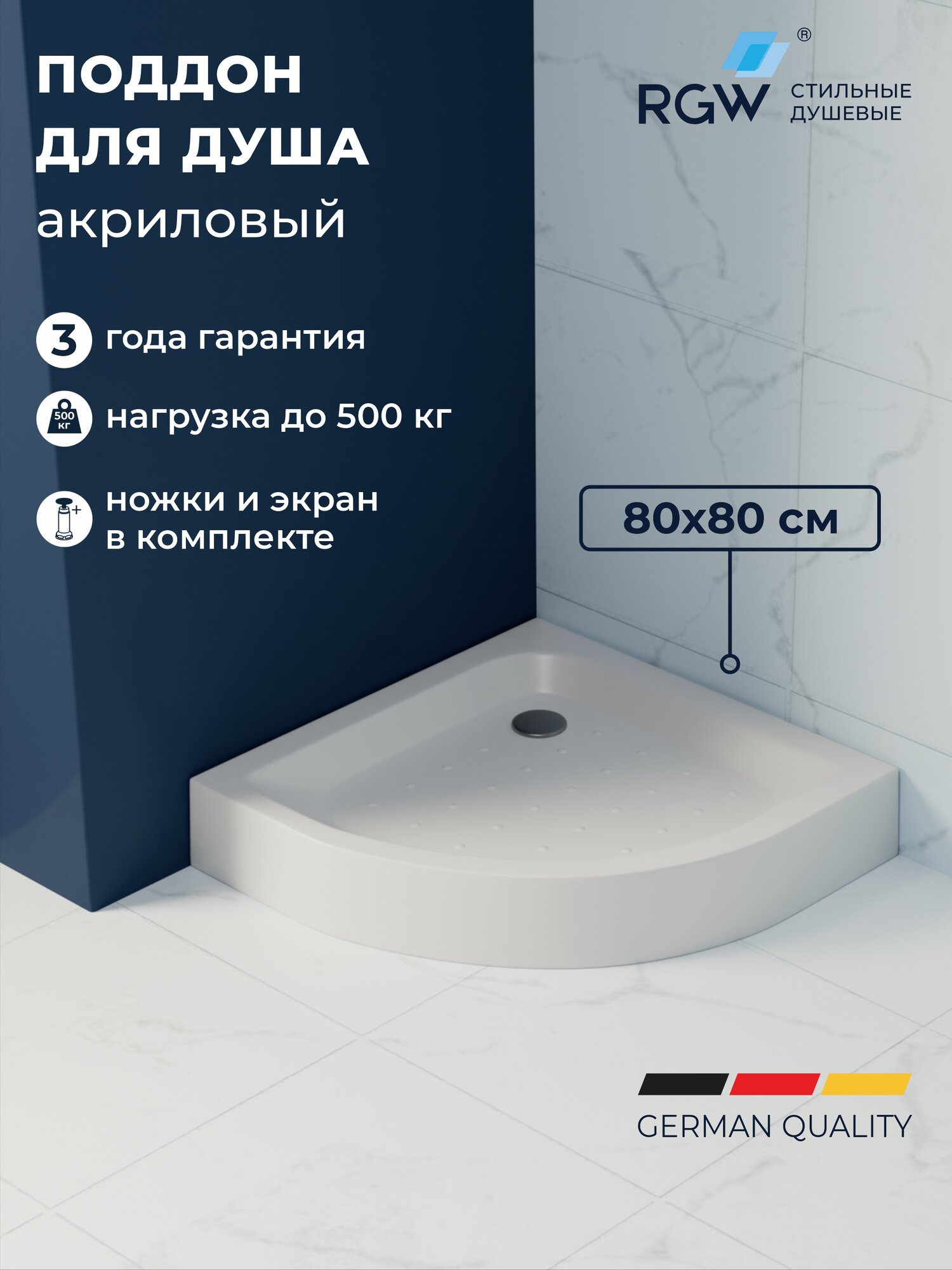 Купить Поддон для душа акриловый полукруглый RGW LUX/TN-P 800×800 Литой экран 16180488-41 с доставкой по всей России.