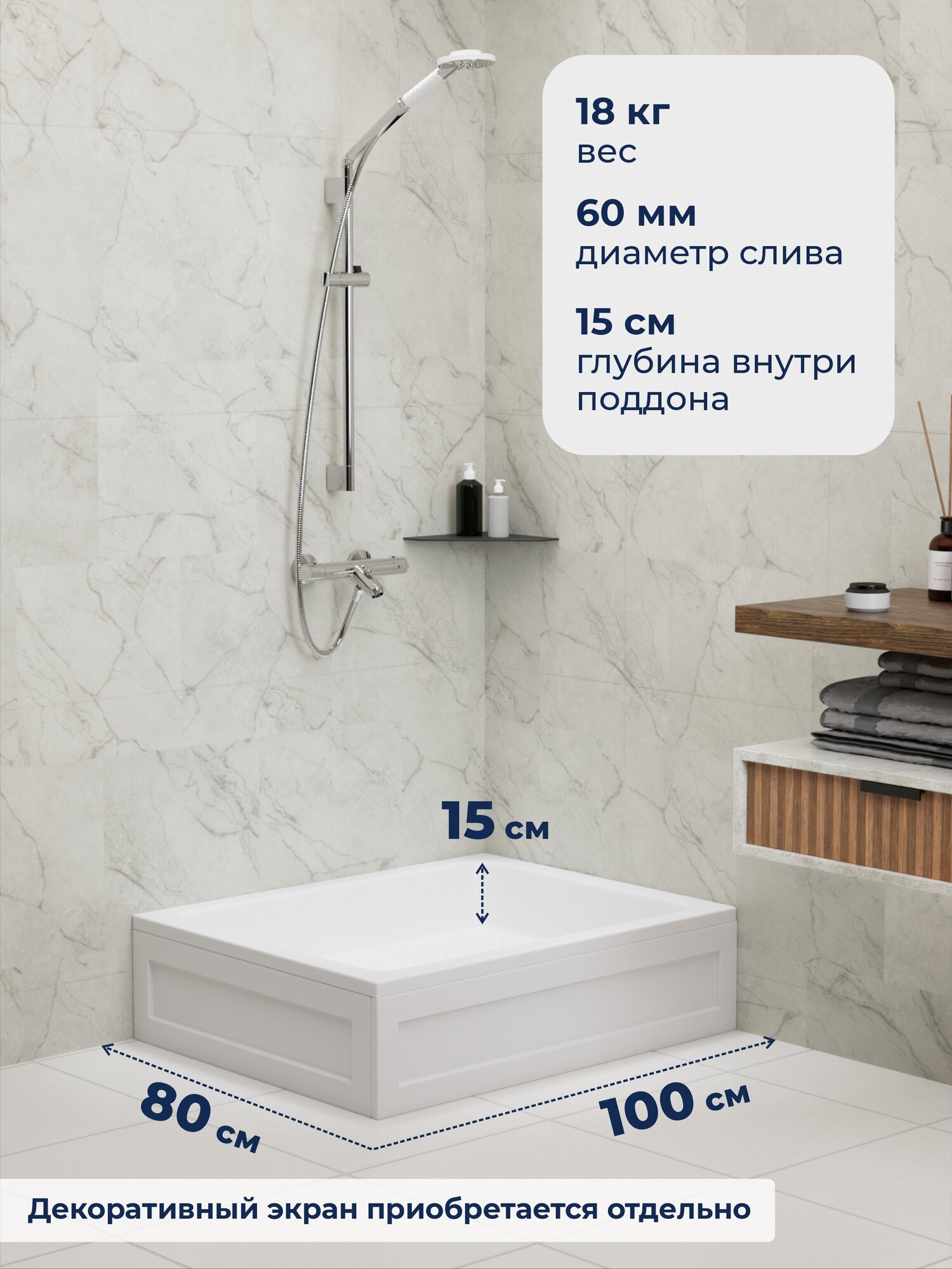 Душевые акриловые поддоны серии B/CL-S - это не знающая аналогов прочность в элегантном исполнении и по приятной цене. Модель квадратной формы с углубленной купелью глубиной 150 мм, оптимально адаптируясь к ванной комнате любой площади. Акриловые поддоны особенно актуальны для регионов с жесткой водой, поскольку идеальная гладкость и полное отсутствие пор на поверхности делают его устойчивым к агрессивному воздействию жесткой воды. Поддон практически не загрязняется и легко поддается очистке. Гигиеничность акрила и ряд усиливающих технологий в изготовлении обеспечивают высокую устойчивость изделия к влажной среде и продлевают срок эксплуатации. Акриловые поддоны мы изготавливаем из сантехнического акрила АБС + ПММА методом вакуумного формирования, что обеспечивает идеальную гладкость и блеск поверхность без швов и стыков, а также придает прочность и долговечность изделию. Толщина акриловой формы составляет 3 мм и дополнительно усилена напылением стеклопластика и применением внутреннего закладного элемента - пластины ДСП толщиной 16 мм для большей прочности и надежности конструкции - поддон способен выдержать нагрузку до 180 кг. Глубина поддона 150 мм. Послойное нанесение стеклопластика от 4 мм на поверхность поддона не только повышает прочность, но и обеспечивает звукоизоляцию, что делает принятие душа особенно приятным. А низкая теплопроводность акрила сохраняет поддон теплым надолго для ещё большего комфорта! А еще наши клиенты отмечают преимущество технического уклона поддона для быстрого и полного слива воды.