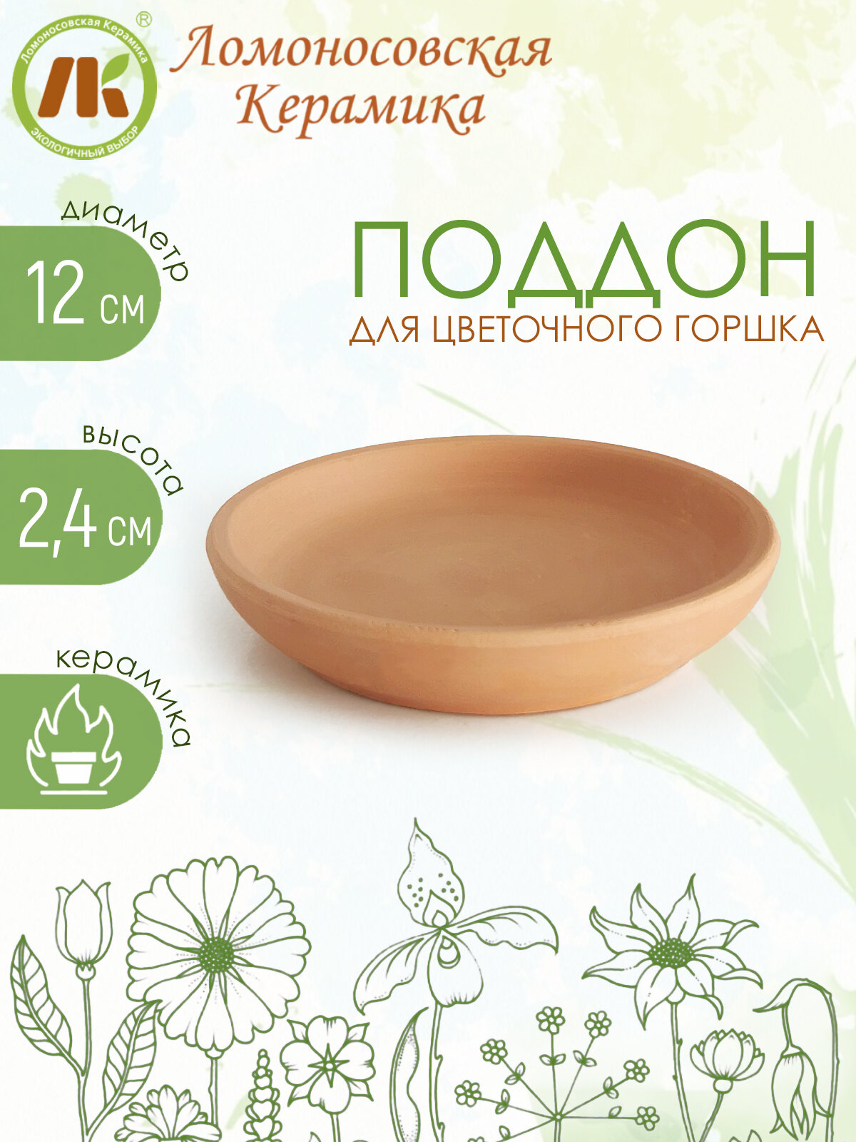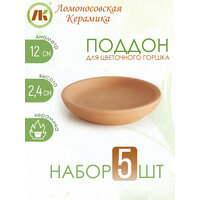 Поддон для цветочного горшка от Ломоносовская Керамика - это набор из 5 керамических поддонов, каждый из которых имеет диаметр 12 см и высоту 2,4 см.