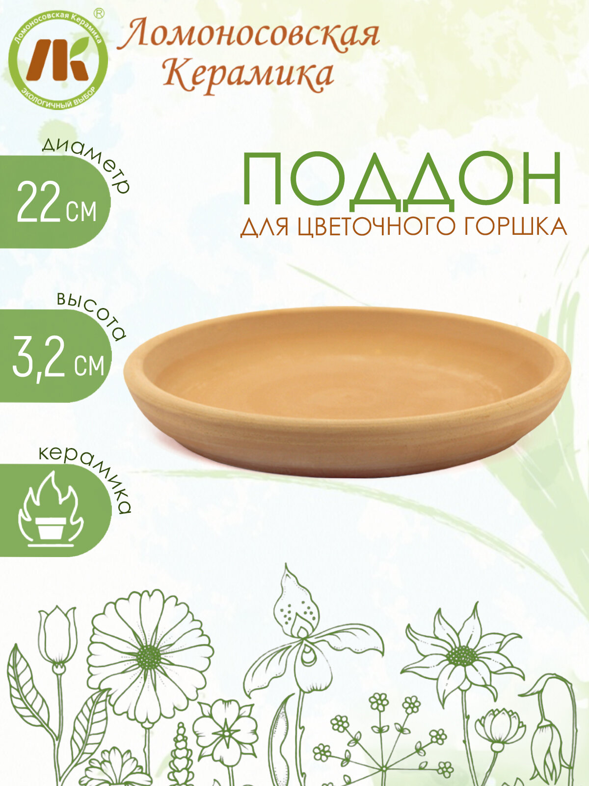 Поддон для цветочного горшка от Ломоносовская Керамика - это набор из 5 керамических поддонов, каждый из которых имеет диаметр 22 см.