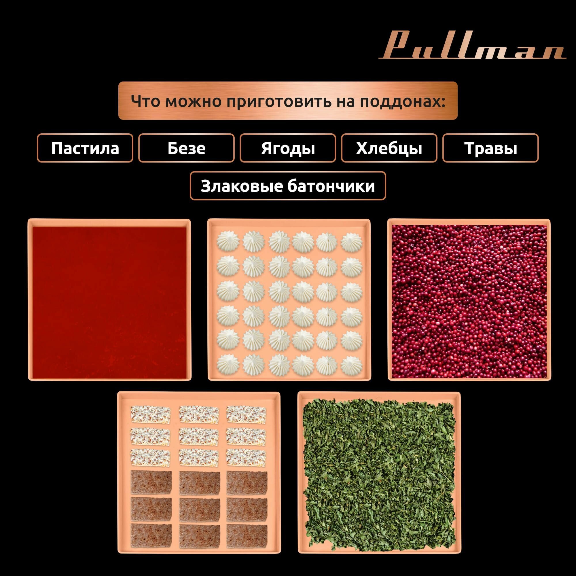 Поддоны для пастилы Pullman PL-Q29-3 (комплект из трех штук) подходят к большинству стандартных сушилок для овощей и фруктов: Pullman, Kitfort, Pioneer, Rawmid, Oberhof и многих других.