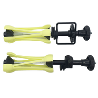Подъемник состоит из двух держателей с цанговым механизмом, цепи и грузика-утяжелителя. Цанговый механизм (гантель) вставляется в трубку, на которую намотан фон. При повороте рукоятки держателя по часовой стрелке четыре лепестка цанги разжимаются и плотно фиксируются в трубке рулона. Обратным движением можно освободить держатель.