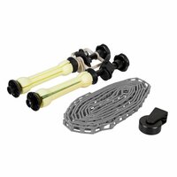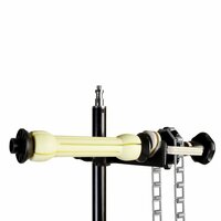 B-REEL – система для установки и подъема фонов, намотанных на трубу (втулку) с внутренним диаметром 46–78 мм. Может использоваться в фото- и видеостудиях, в том числе в домашних, при организации локальных зон для фотосессий, интервью, видеоблогинга. Помогает не только оперативно разматывать или убирать рулонный фон, но и бережно его хранить, без повреждения, загрязнения и складок на полотне. Подъемник состоит из двух держателей с цанговым механизмом, цепи и грузика-утяжелителя. Цанговый механизм (гантель) вставляется в трубку, на которую намотан фон. При повороте рукоятки держателя 4 лепестка цанги разжимаются и плотно фиксируются в трубке рулона. Держатели устанавливаются в паз кронштейна. Для монтажа системы можно использовать кронштейны CBH-3: стальные пластины толщиной 4 мм с помощью винтовых зажимов закрепляются на перекладинах, штангах, трубах, стойках, распорках-автополах диаметром до 35 мм. На одном держателе, входящем в комплект, находится шестеренка цепной передачи с ограничителем, удерживающим цепь от соскальзывания с зубцов. На другом – упор с винтовым зажимом, исключающий перемещение рулона по горизонтали. Цепь состоит из разъемных звеньев. Ее длина от зубчатого колеса до груза – 2 метра. Убрав часть звеньев, цепь можно укоротить, чтобы сделать управление фоном более удобным. Грузик (280 г.) с направляющими для звеньев утяжеляет цепь, чтобы она висела ровно, не раскачивалась и не запутывалась. Подъемник можно использовать как самостоятельное устройство, в виде комплекта с кронштейнами CBH-REEL или как часть систем B-3W и B-4W, рассчитанных на работу с несколькими фонами.