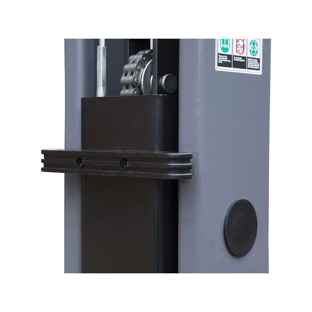 Двухстоечный подъемник KraftWell г/п 4000 кг, электрогидравлический, высота 2800 мм, сеть 380 В, цвет серый, упр. стопорами на 2-х колоннах KRW4DLM предназначен для подъема легковых автомобилей. Подъем осуществляется при помощи двух гидравлических цилиндров с цепным приводом каретки. Это позволяет уменьшить нагрузку на гидроцилиндры и увеличивает их срок службы. Каретки оснащены асимметричными поворотными лапами для удобства позиционирования автомобилей. Плавное перемещение кареток происходит за счет нейлоновых ползунов, установленных на каретки. Безопасность работы достигается применением надежной и зарекомендовашей себя системы механических стопоров. Снятие кареток со стопоров производится при помощи тросов, расположенных на каждой каретке. Габаритная высота подъемника позволяет устанавливать его в помещениях с высотой потолка от 3 метров и выше.