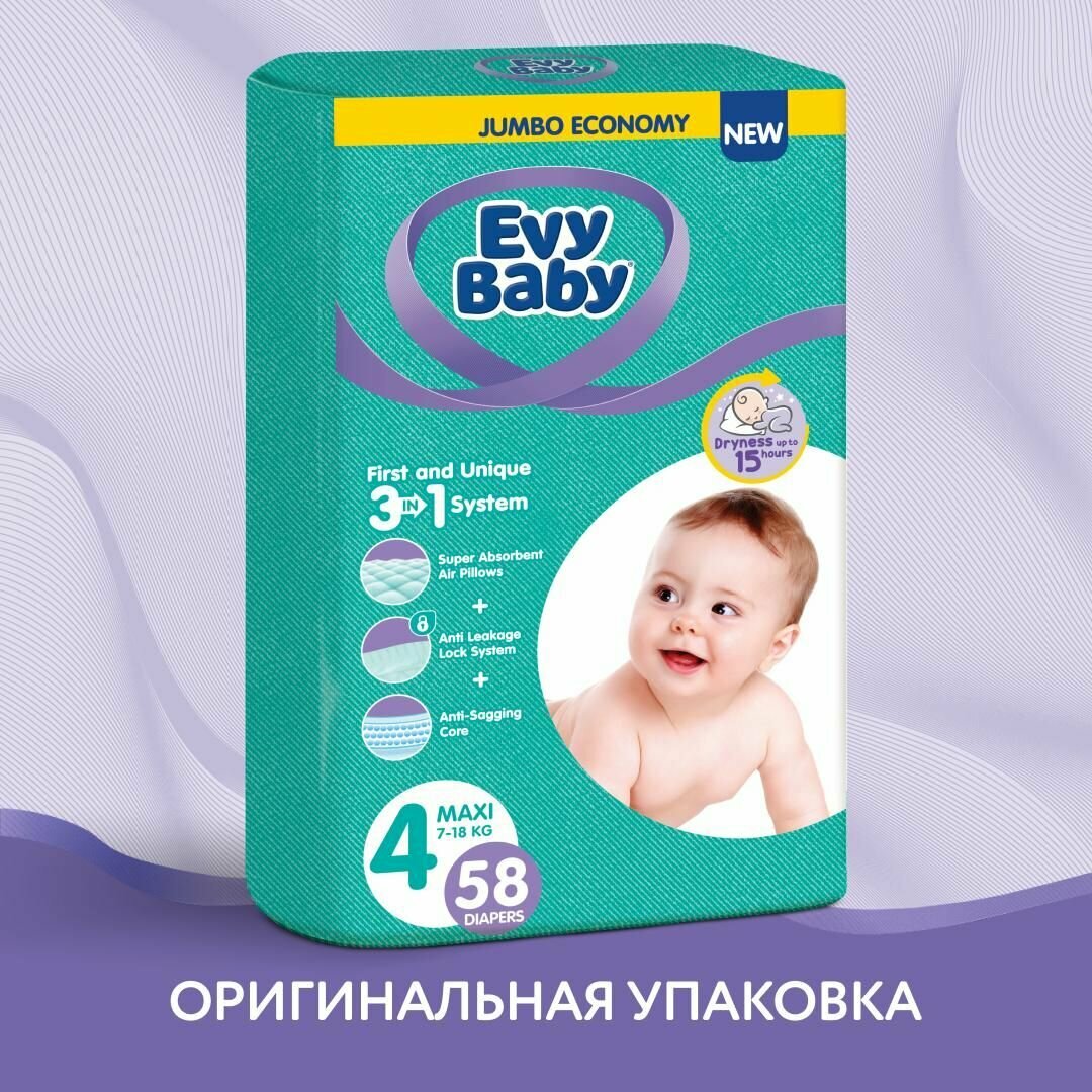 Купить Подгузники Evy Baby Maxi, 7-18кг, 4L, 58шт с доставкой по всей России. Подгузники Evy Baby Maxi, 7-18кг, 4L, 58шт: сравнение цен, характеристики, фото, актуальное наличие и цены.