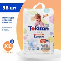 Купить Подгузники детские Tokisan Premium JUNIOR XL для малышей 11-25 кг, 5 размер, 58 шт, дневные (ночные) с индикатором наполнения, одноразовые дышащие для детей, девочек и мальчиков с доставкой по всей России.