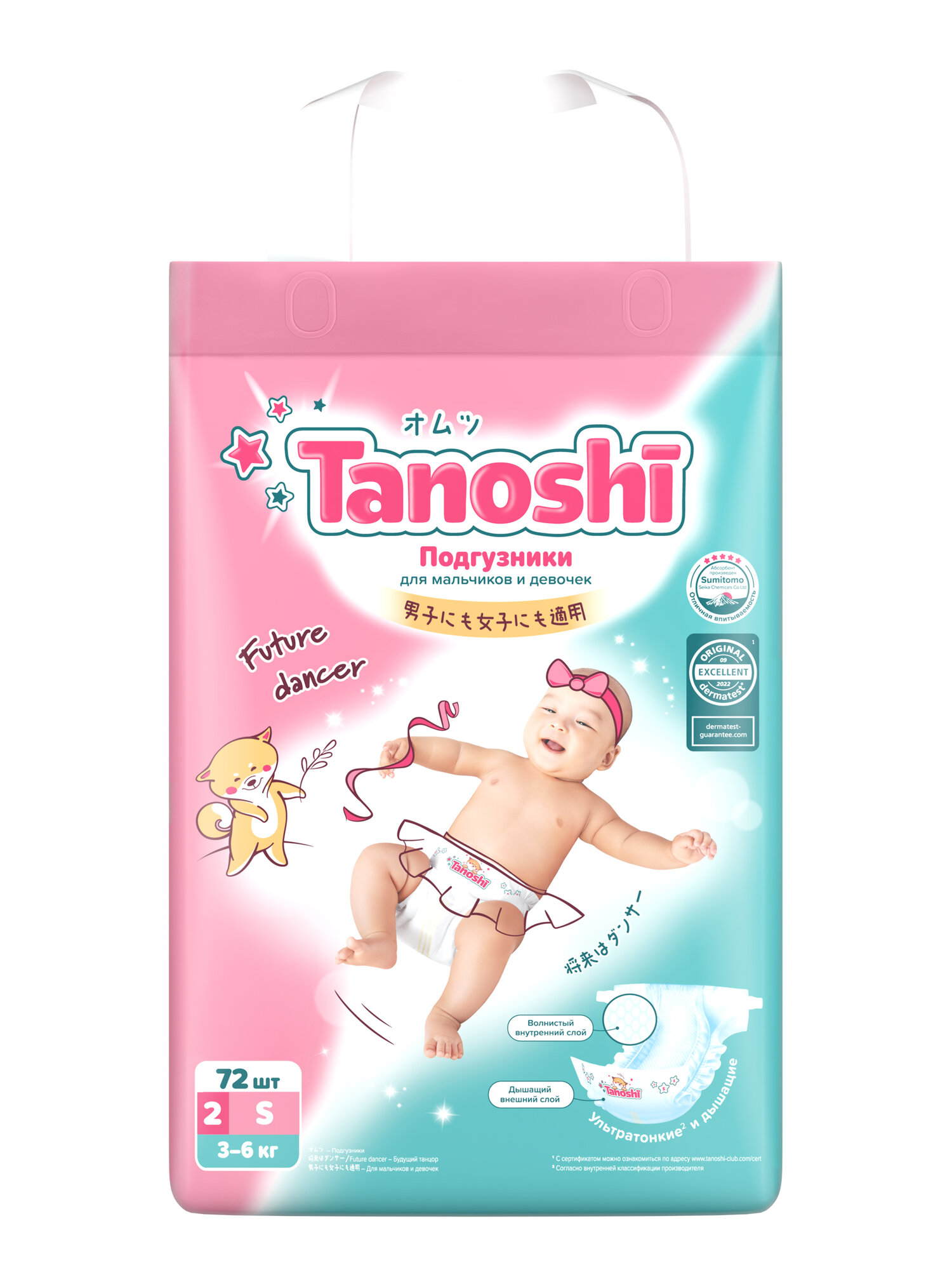 • Гипоаллергенные, не стесняющие движения малыша, Tanoshi сохраняют кожу ребёнка сухой между сменой подгузника.