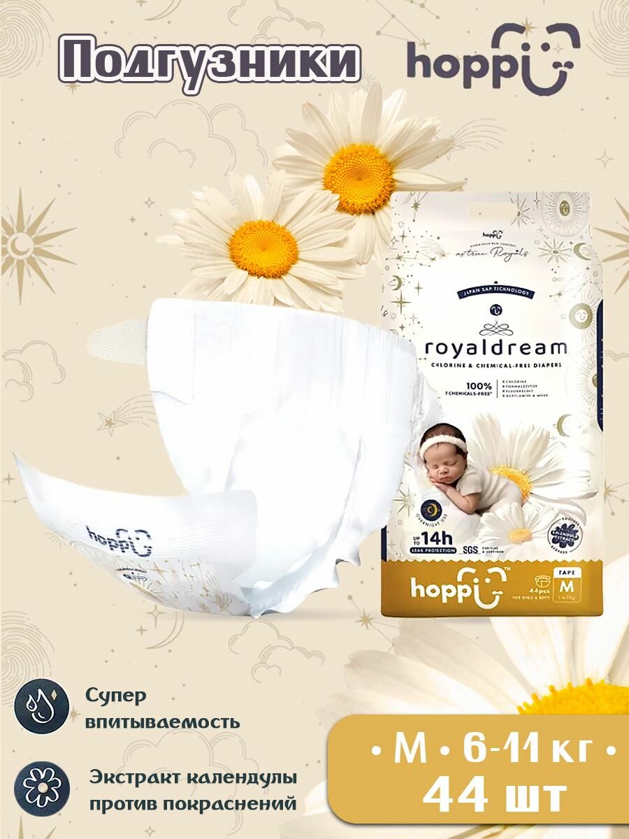 Купить Подгузники для новорожденных Hoppi Royal Dream размер M (6-11 кг) 44 шт HB-040-M с доставкой по всей России. Подгузники для новорожденных Hoppi Royal Dream размер M (6-11 кг) 44 шт HB-040-M: сравнение цен, характеристики, фото, актуальное наличие и цены.