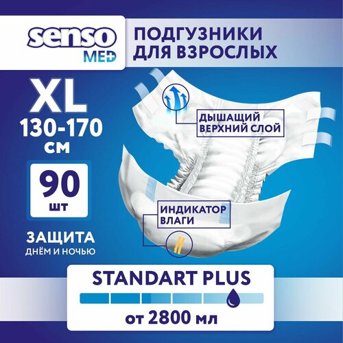 Подгузники для взрослых Senso Med Standart Plus, ночные (дневные), 4 Размер, XL, 90 штук, одноразовые дышащие впитывающие трусы с индикатором влаги для лежачих больных, 3 упаковки по 30 шт: сравнение цен, характеристики, фото, актуальное наличие и цены.