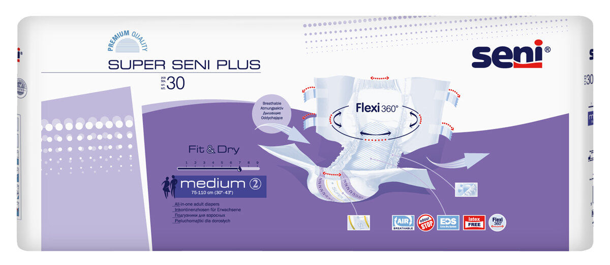 Seni Подгузники для взрослых Super Plus, 75-110 см, M (30 шт.): сравнение цен, характеристики, фото, актуальное наличие и цены.