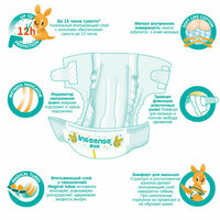 | Дополнительная информация | Подбирайте детские подгузники правильно, в соответствии с размерным рядом: NB (1) до 5 кг, S (2) 4-8 кг, M (3) 6-11 кг, L (4) 9-14 кг, XL (5) 12-20 кг. |