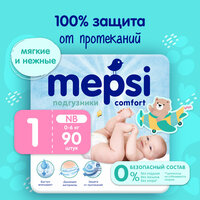 Купить Подгузники Mepsi детские, премиальный абсорбент, 1 размер, NB (до 6кг), 90 шт. с доставкой по всей России.