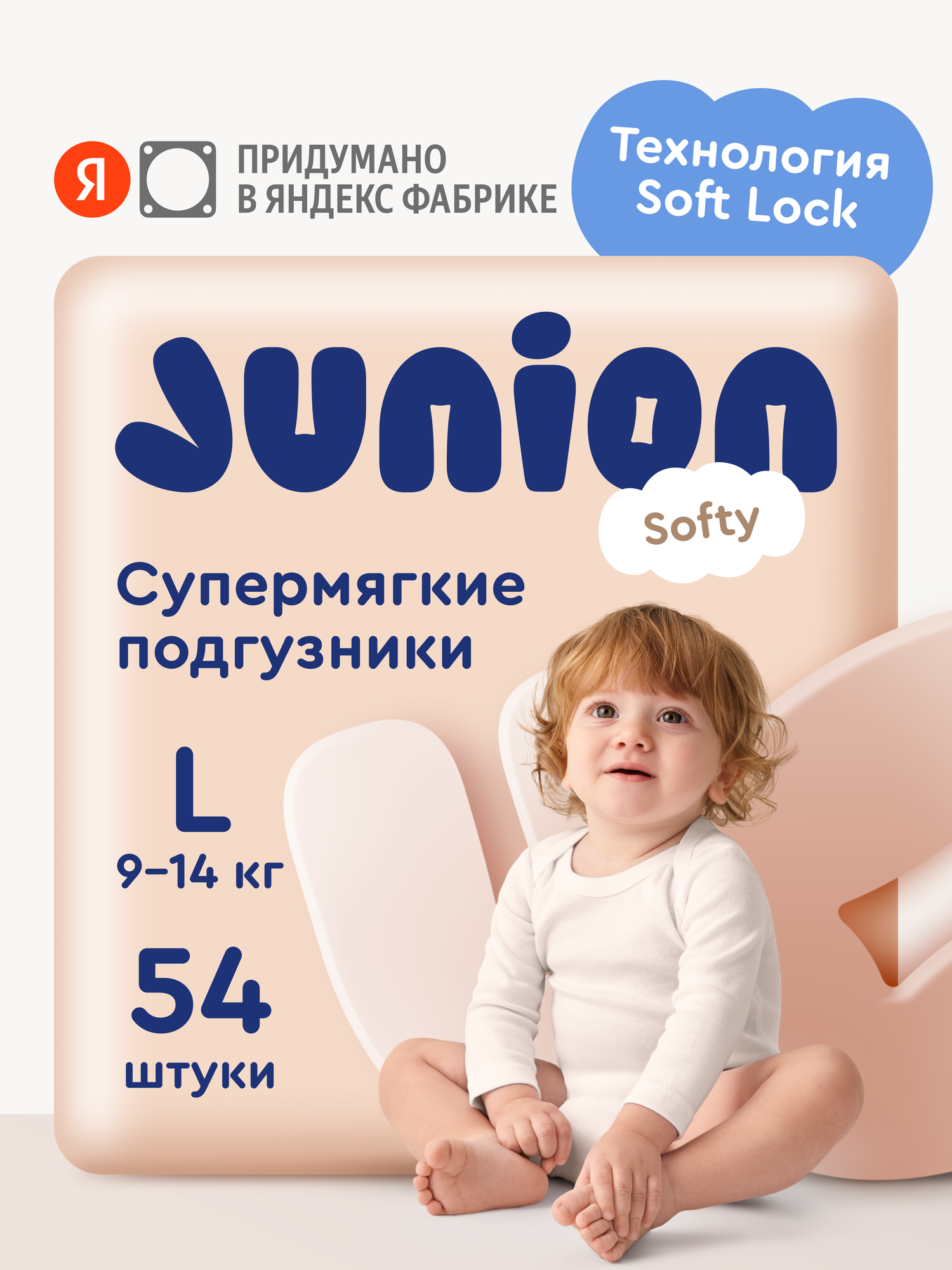 Подгузники на липучках Junion Softy размер L (9-14 кг), 54 шт.: сравнение цен, характеристики, фото, актуальное наличие и цены.
