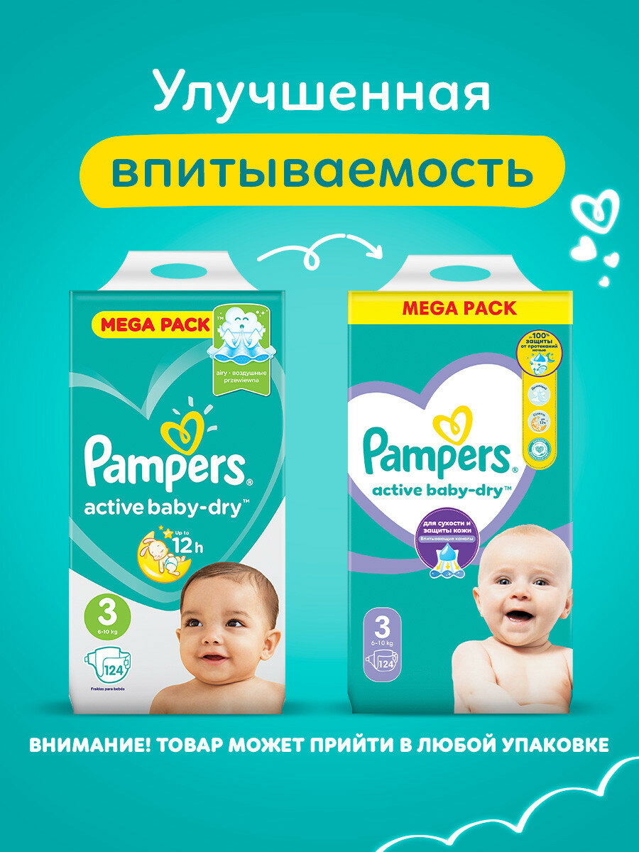 Купить Подгузники Pampers Active Baby-Dry 6–10 кг, размер 3, 124 шт. с доставкой по всей России. Подгузники Pampers Active Baby-Dry 6–10 кг, размер 3, 124 шт.: сравнение цен, характеристики, фото, актуальное наличие и цены.