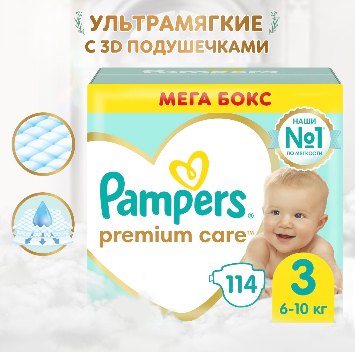 Купить Подгузники Pampers Premium Care 3 (6-10 кг) 114шт с доставкой по всей России. Подгузники Pampers Premium Care 3 (6-10 кг) 114шт: сравнение цен, характеристики, фото, актуальное наличие и цены.