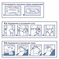 | Особенности | анатомическая форма, антибактериальные, впитывающие, гипоаллергенные, многоразовые застежки, непромокаемые, ночные, поясные, с индикатором наполнения, с нейтрализатором запаха, эластичный пояс |