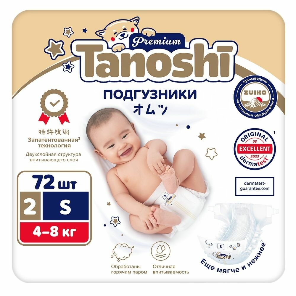 Купить Подгузники Tanoshi Premium, размер S / 2 (4-8 кг) 72 шт с доставкой по всей России.