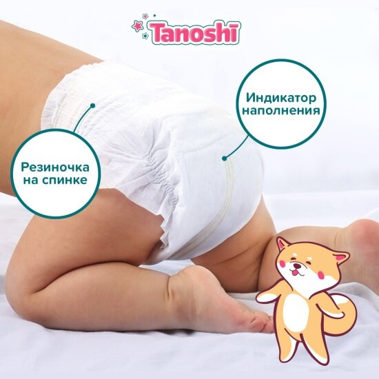 * Гипоаллергенные, не стесняющие движения малыша, Tanoshi сохраняют кожу ребёнка сухой между сменой подгузника.