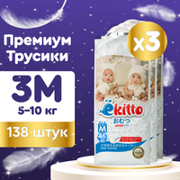 Купить Подгузники трусики 3 размер M для детей от 5-10 кг детские японские ночные памперсы премиум 3 уп по 46 шт / Ёкитто с доставкой по всей России.