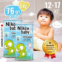 Купить Подгузники трусики 5 размер детские Nihon baby, 76 шт, XL (12-17 кг), ночные и дневные, одноразовые дышащие с индикатором влаги для детей, мальчиков и девочек / 2 упаковки по 38 штук с доставкой по всей России.
