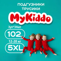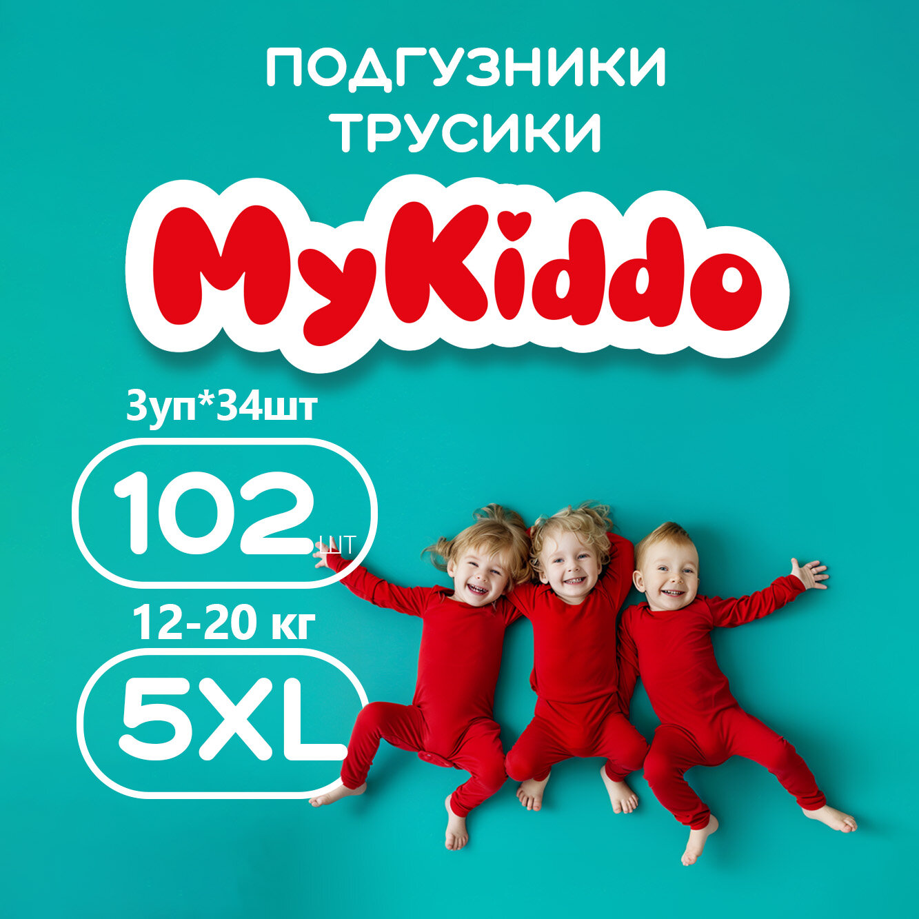 Купить Подгузники трусики 5 XL, для детей 12-20 кг, MyKiddo, Classic, мегабокс 102 шт. (3 упаковки по 34 шт.) с доставкой по всей России.