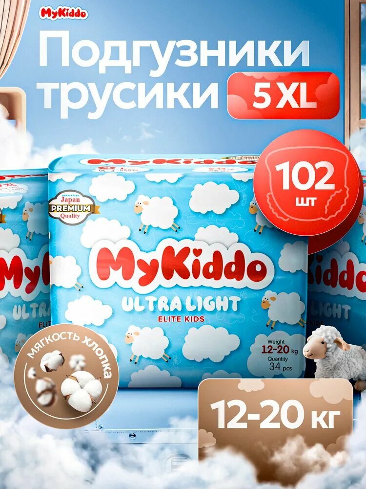 Купить Подгузники трусики 5 XL, для детей 12-20 кг, мегабокс 102 шт. (3 упаковки по 34 шт.), MyKiddo, Elite с доставкой по всей России.