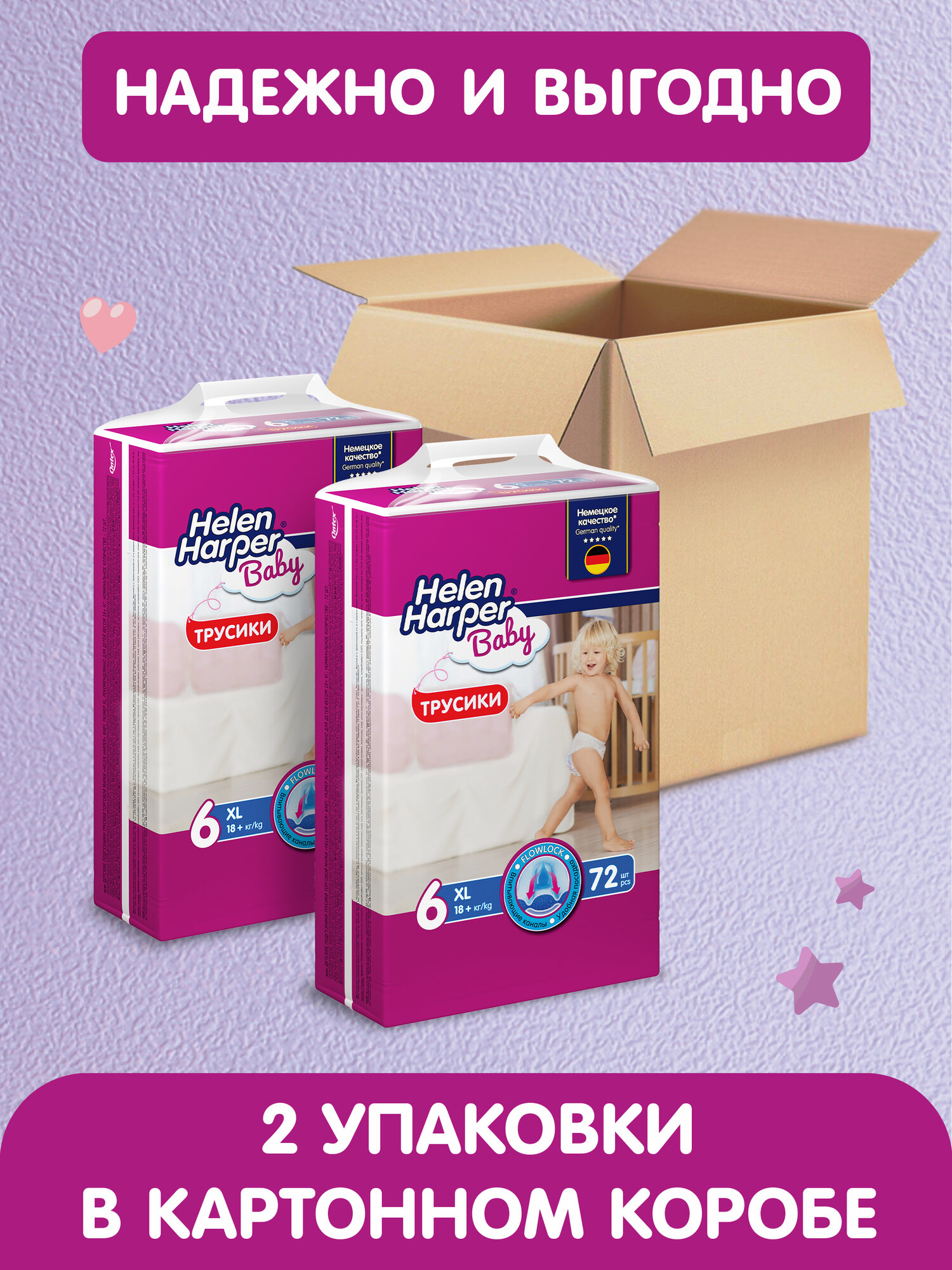 Они быстро и равномерно впитывают влагу, блокируя её внутри. Мягкие и эластичные поясок и резиночки вокруг ножек защищают от протеканий, не натирая кожу и не стесняя движений малыша. Дышащий внешний слой обеспечивает свободную циркуляцию воздуха. Индикатор влажности подскажет маме, когда пора менять трусики. Трусики Helen Harper Baby не содержат отдушек и дерматологически протестированы.