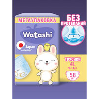 Купить Подгузники трусики детские 4 L размер 9-14 кг, 58шт, WATASHI с доставкой по всей России. Подгузники трусики детские 4 L размер 9-14 кг, 58шт, WATASHI: сравнение цен, характеристики, фото, актуальное наличие и цены.